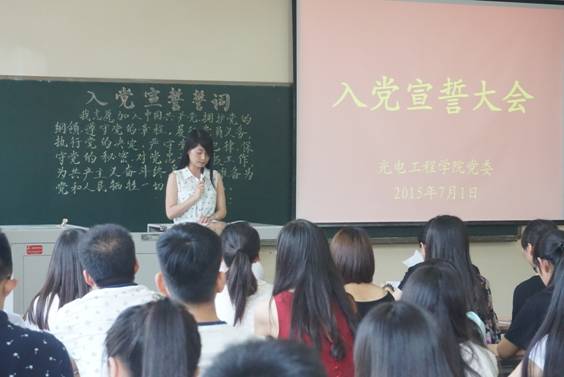 为庆祝中国共产党成立94周年,进一步增强员工党员党性意识,7月1日,公司党委在未央校区工6-402教室隆重举行了入党宣誓大会。公司党委书记弥谦、副书记陈彤,各员工党支部书记,42名新发展的党员及部分员工党员代表参加了仪式。